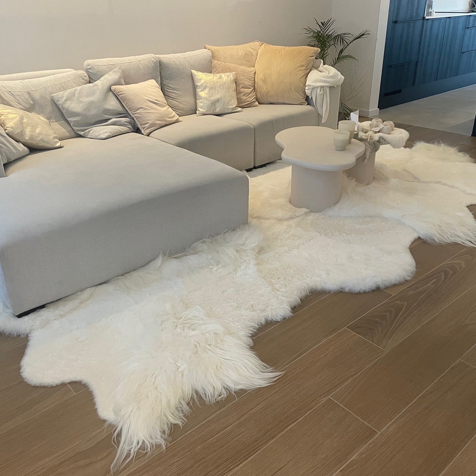 Groot wit schapenvloerkleed